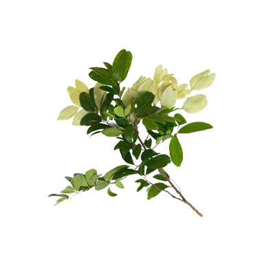 - Daun majemuk dengan sepasang anak daun, dengan panjang tangkai 2-8 mm.Anak daun berbentuk lonjong sampai bundar telur miring tidak simetris. Ukuran anak daun 5,5-16,5 x 1,5-5,5 cm, hampir tak bertangkai, menggantung, hijau tua berkilap. Daun muda berwarna putih atau merah jambu terang, menggantung lemas.