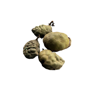 - Buah polong berdaging tebal, berbentuk ginjal keriput berujung meruncing, 3-9 x 2-6 x 1-4 cm, bergantungan di batang, cokleat bersisik ketika muda dan kehijauan atau kekuningan apabila masak.
